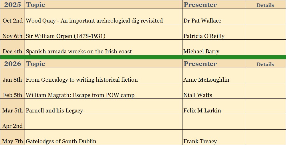 Community Centre, North Avenue, Mount Merrion @ 8.00pm (directions)