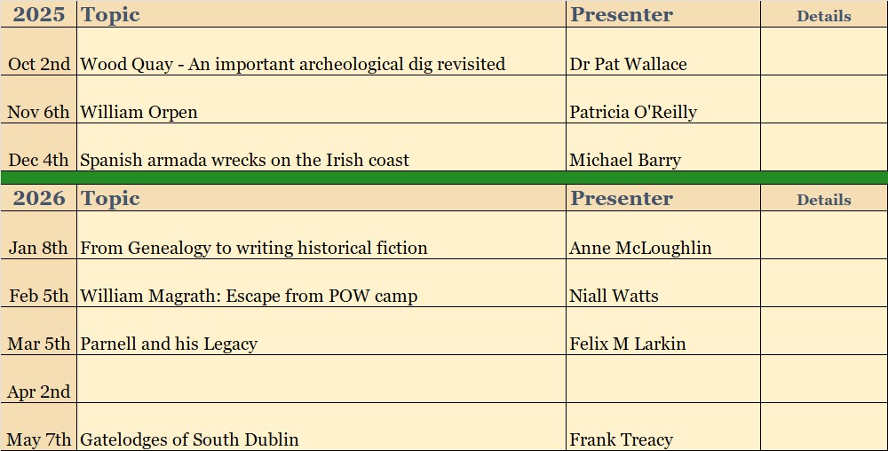 Community Centre, North Avenue, Mount Merrion @ 8.00pm (directions)