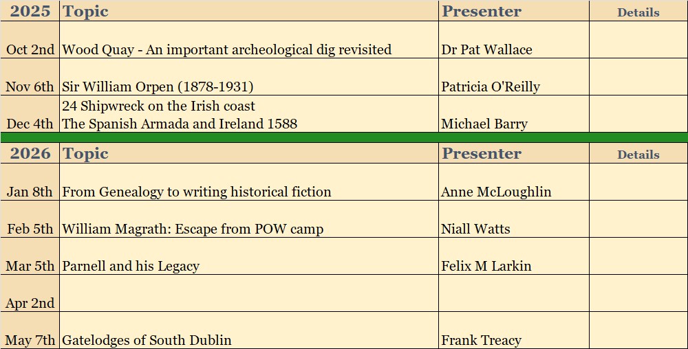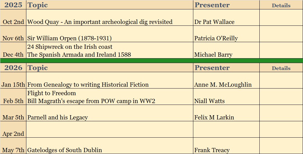 Community Centre, North Avenue, Mount Merrion @ 8.00pm (directions)